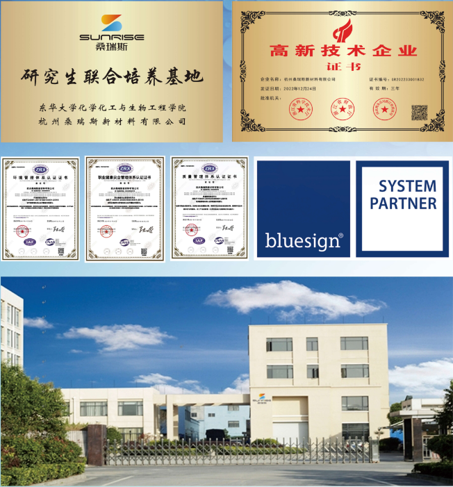 桑瑞斯品牌故事充滿了執著和不服輸的精神。技術差異化使公司在紡織印染前處理、增白劑、印花、染色領域具有一定的影響力。公司研發和技術核心團隊均來自國際知名染化企業,有杭州市級領軍人才1名,東華大學校外碩上研究生導師兩名,2021年成為東華大學化學化工和生物工程學院研究生聯合培養基地。2021年獲得浙江省科技型中小企業。2021年公司正式成為藍標bluesign合作伙伴。2022年獲得國家級高新技術企業。