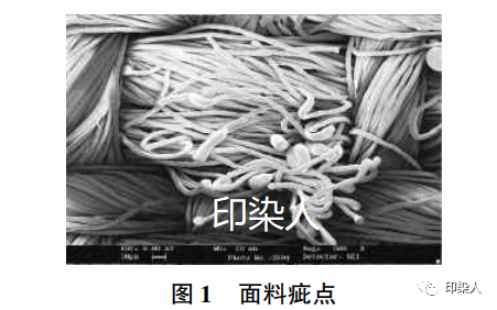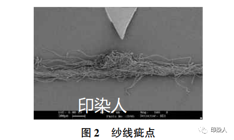 收集針織物面料中的深色疵點,掃描電鏡照片如圖1、圖2